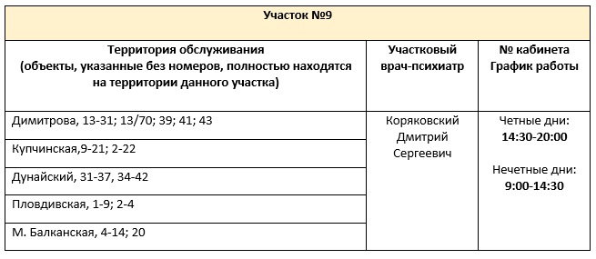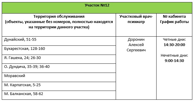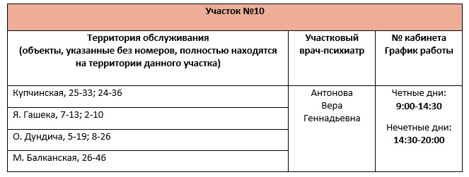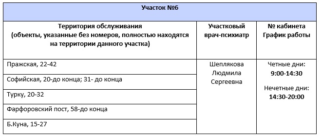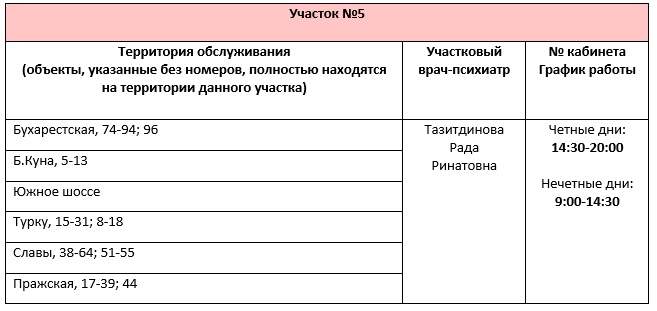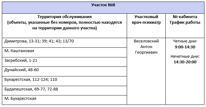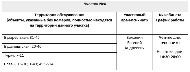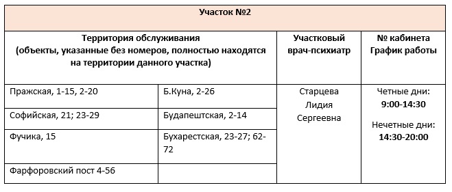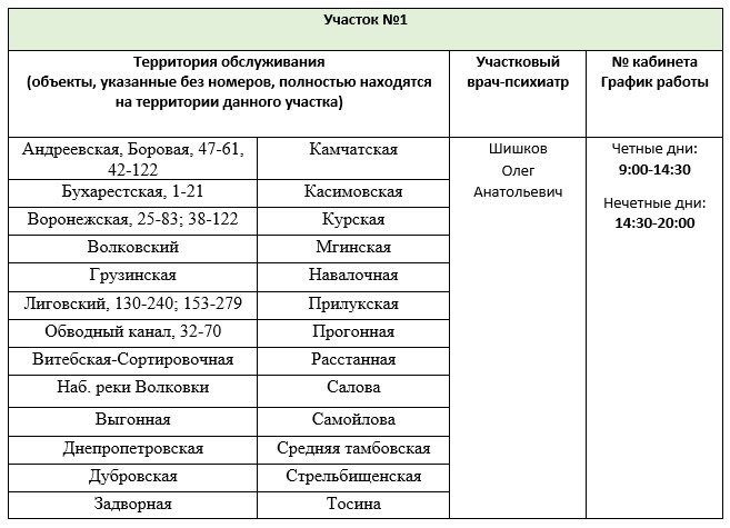Перечень врачебных участков амбулаторного отделения для обслуживания жителей Фрунзенского района СПб ГБУЗ ПНД с указанием территории обслуживания